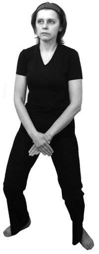 Исходное положение: Стоя в полуприседе (поза всадника), ноги на ширине плеч. Спина прямая. Грудь немного втянуть. Руки находятся на нижней части живота. Взгляд направить прямо перед собой.
