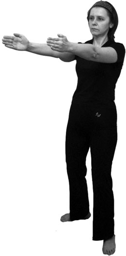 1. Руки решительно выпрямляем, держим их параллельно, ладони раскрыты и развернуты друг к другу (фото 116).