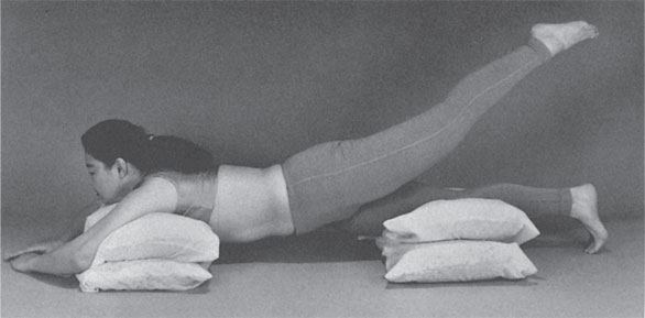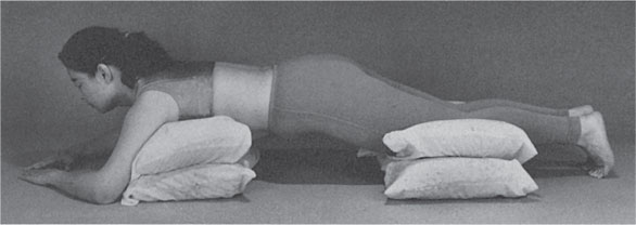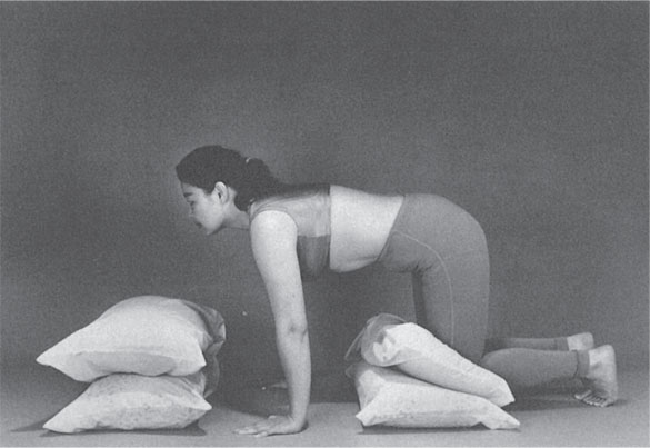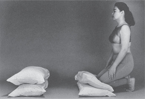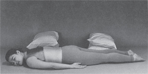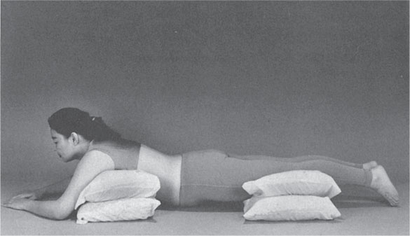 Чтобы принять первую позу, вам понадобится четыре узкие подушки. Положите их друг на друга (по две), причем каждая пара по высоте не должна превышать 30 см (рис. 10).
