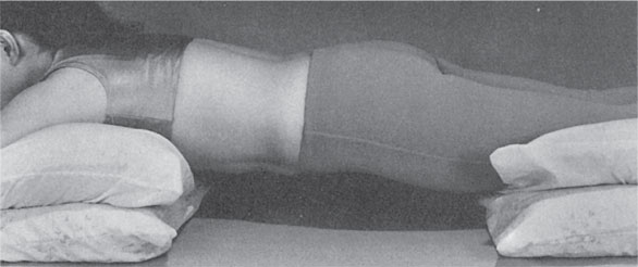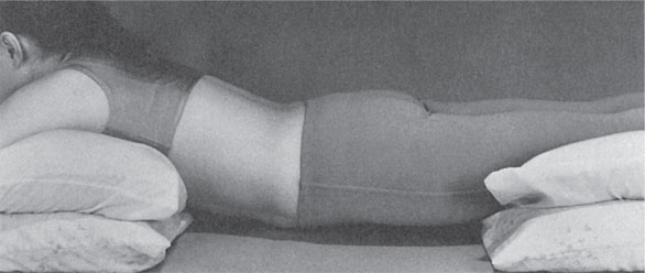 Даже если сначала ваша спина была жесткой, благодаря описанному выше методу живот расслабится и коснется пола (или очень близко к нему приблизится). Если живот сразу касается пола, вам стоит поднять подушки повыше (рис. 14).