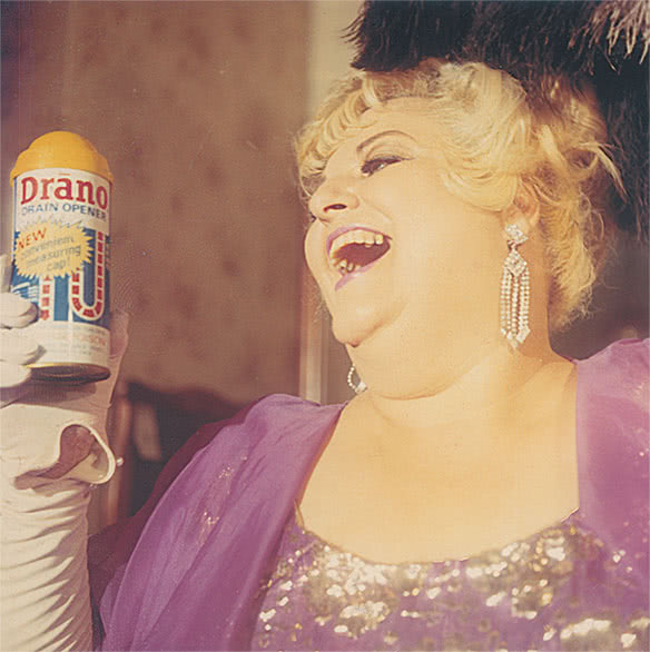 Он поднес к окошку какую-то фотографию. Этот неожиданный поворот так меня изумил, что я не сразу сообразил, что от меня требуется. На снимке была какая-то оперная дива – крашеная блондинка в белых перчатках и шляпке с перьями. В руке она держала банку средства от засоров «Драно» и, казалось, пела в нее, как в микрофон.