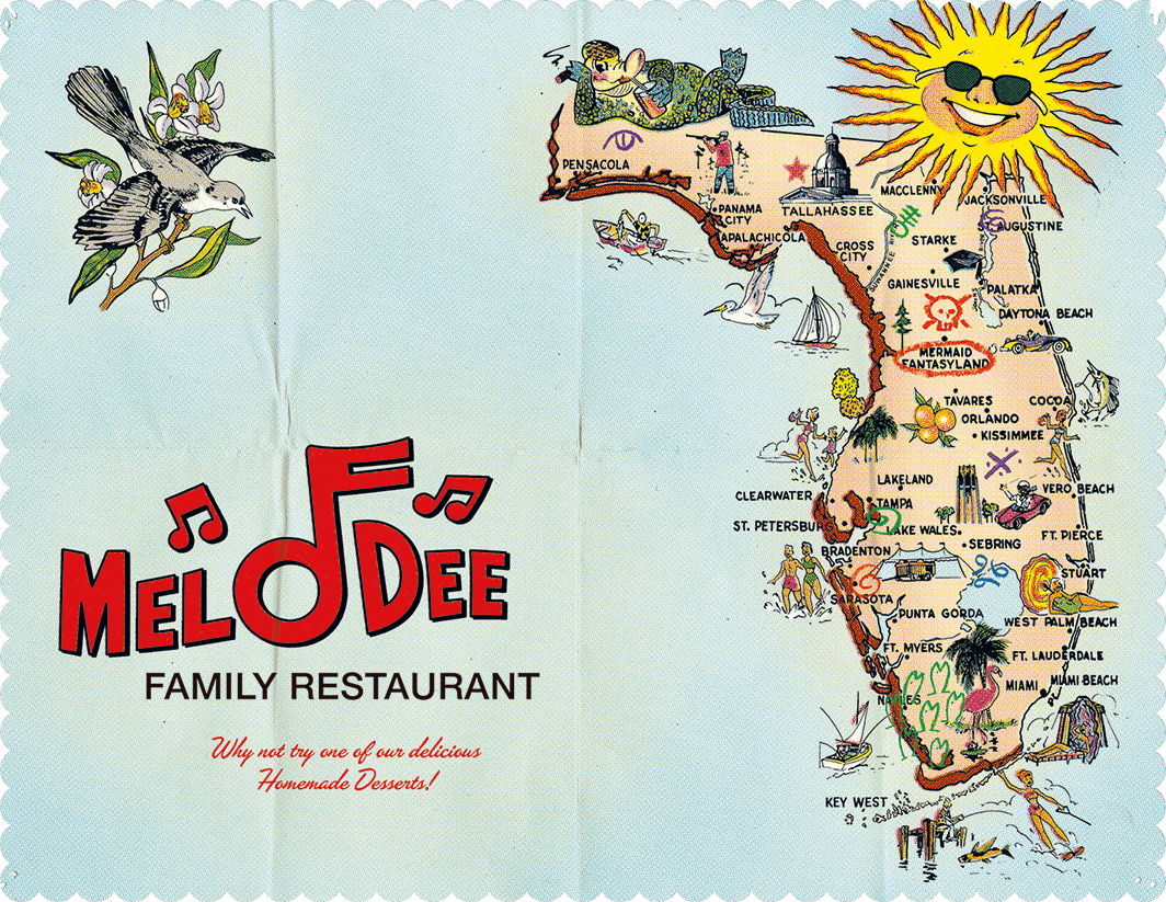 Я сорвал верхние карты и обнаружил под ними подставку под стакан из «Мел О’Ди», ту, с Флоридой. В забегаловке, помнится, детям давали карандаши, чтобы они рисовали, пока едят, и мы с дедушкой пустили их в дело – разрисовали картонный квадратик. Я напрочь забыл об этом дне и о том, что эта картинка вообще тут была. Но теперь я ясно видел, что сделал Эйб: на самой карте в основном были следы его более твердой, чем у меня, руки. В самом центре он обвел кругом Русалочью страну чудес, в точности как Эйч – своим мокрым стаканом. А рядом нарисовал маленький череп со скрещенными костями и разместил в самой пучине эверглейдских болот косяк рыб с ногами (или это были люди с рыбьими головами?). В нескольких местах по всему штату он нарисовал какие-то спирали, и, если я верно запомнил легенду к ныне утраченной Карте Дней мисс Сапсан, это означало «ПЕТЛЯ – ЗДЕСЬ». Еще там было несколько символов, расшифровать которые мне оказалось не под силу.