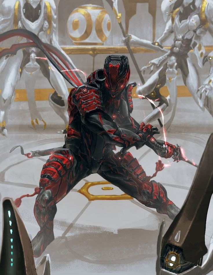 Тело первого начало стремительно изменяться, обрастать новой материей и элементами. Выглядевшее недавно словно скелет существо, покрылось пластинами брони, а там, где у человека должны быть мышцы, проступили очень похожие рельефы, правда всё того же чёрного цвета. К концу трансформации, части тела, стилизованные под доспехи, вдруг покраснели и тускловато сверкнули — было ясно, что энергия разрушения пошла ещё и на дополнительную защиту, но её концентрация откровенно хромала.
