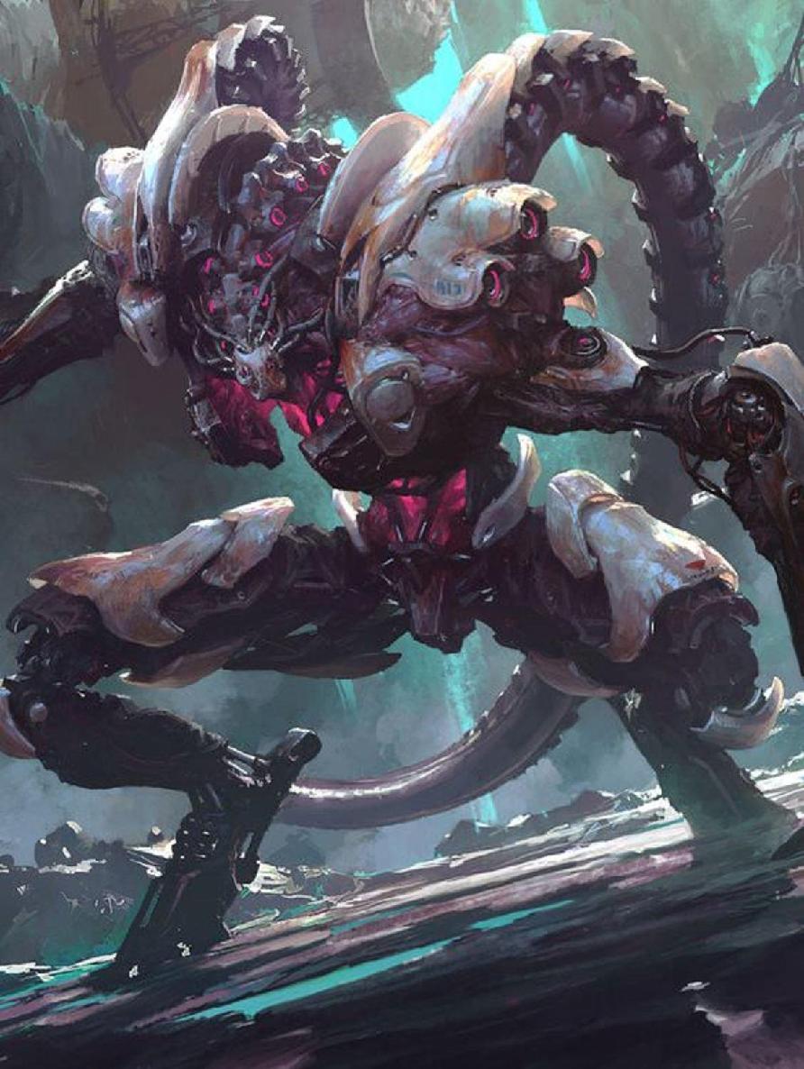 Неожиданно для всех сторон конфликта через разбитый купол с огромной стометровой высоты рухнула массивная фигура, ловко приземлившись на все четыре конечности. Внушительных размеров хвосты, растущие из плеч огромного тела, и обилие металла в нём всем своим видом говорили о ненормальности происхождения странного существа. Тем не менее для слуг лорда разрушения было всё равно как выглядят их жертвы. Все, кто не принадлежит стае их создателя, должны быть уничтожены и точка!