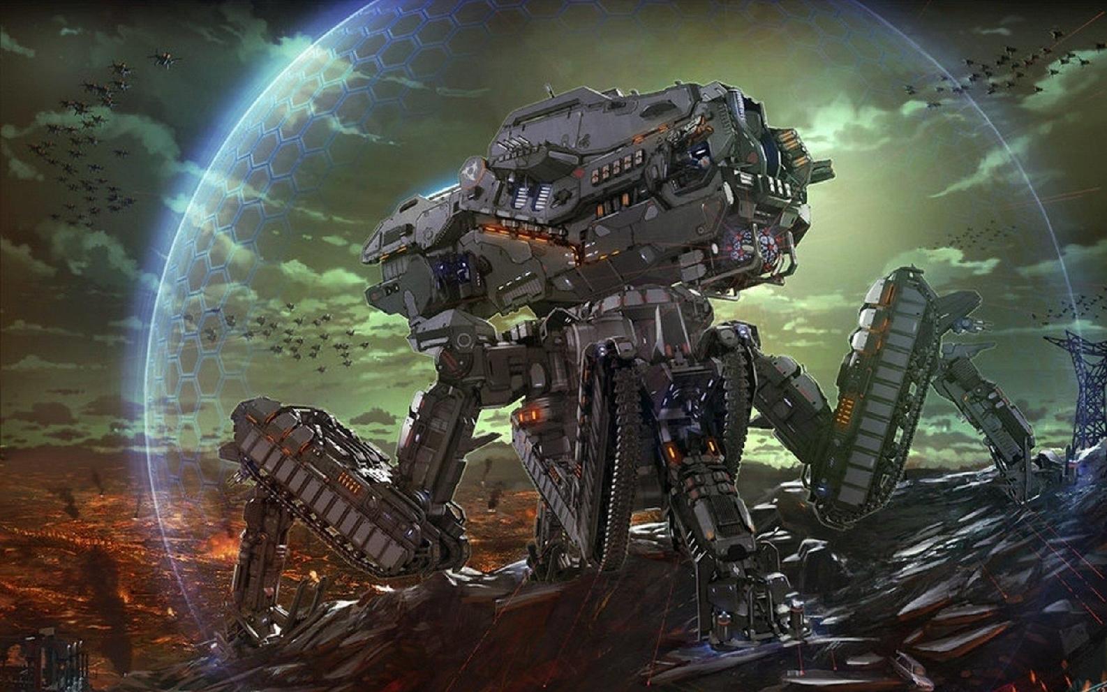 По периметру гигантского купола под искусственными водоёмами, бывшими частью кольцевого паркового комплекса, в этот момент открылись гигантские створки подземных хранилищ. Моментально проглотив воду, бездна начала исторгать из себя гигантских роботов, запрещённых к использованию на любой территории корпораций и стран, исключая колонии. Каждый случай использование роботов тяжелее тысячи тонн считался вопиющим нарушением соглашений и жестоко карался со стороны совета корпораций, отчего подобный шаг можно было рассматривать только как чрезвычайную меру, призванную минимизировать более серьёзный ущерб.