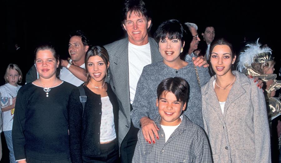 Ее семья осталась дружной и после того, как мать снова вышла замуж. Слева направо: младшая сестра Хлои, старшая сестра Кортни, отчим Брюс Дженнер, мать Крис, Роберт-младший и Ким.