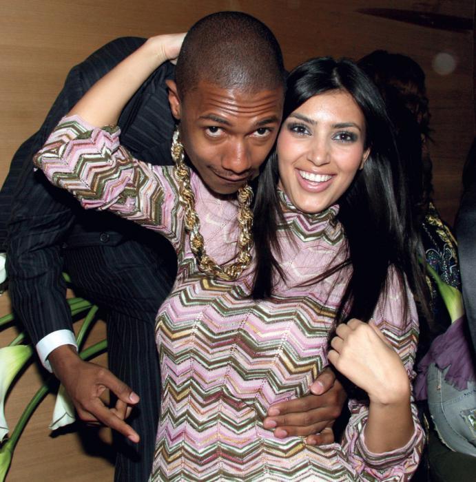 Одаренный множеством талантов телеведущий Ник Кэннон составлял Ким приятную компанию пару месяцев. Они позируют на вечеринке для Канье Уэста в нью-йоркском ресторане в сентябре 2006 года.