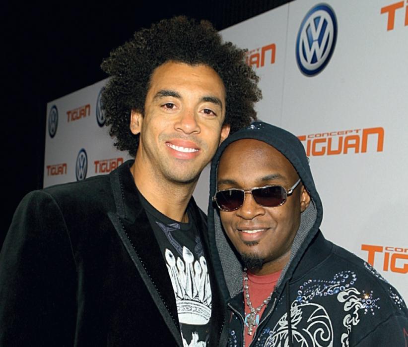 Первый муж Ким, Деймон Томас (в темных очках; на этом фото со своим деловым партнером Харви Мейсоном-младшим) был крутым рекорд-продюсером, но их заключенный в Вегасе брак оказался недолговечным.