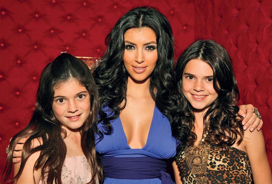 Ким позирует со своими маленькими сестрами, Кайли (слева) и Кендалл Дженнер, в октябре 2007 года на презентации шоу «Светская жизнь семейства Кардашьян» в ресторане «Глава 8» в Агора-Хиллз, штат Калифорния.