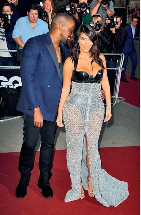 Ким и Канье самостоятельно переработали ее дизайнерский наряд для вечера вручения премий журнала «Джи-Кью Мэн». Канье предложил топ из латекса.
