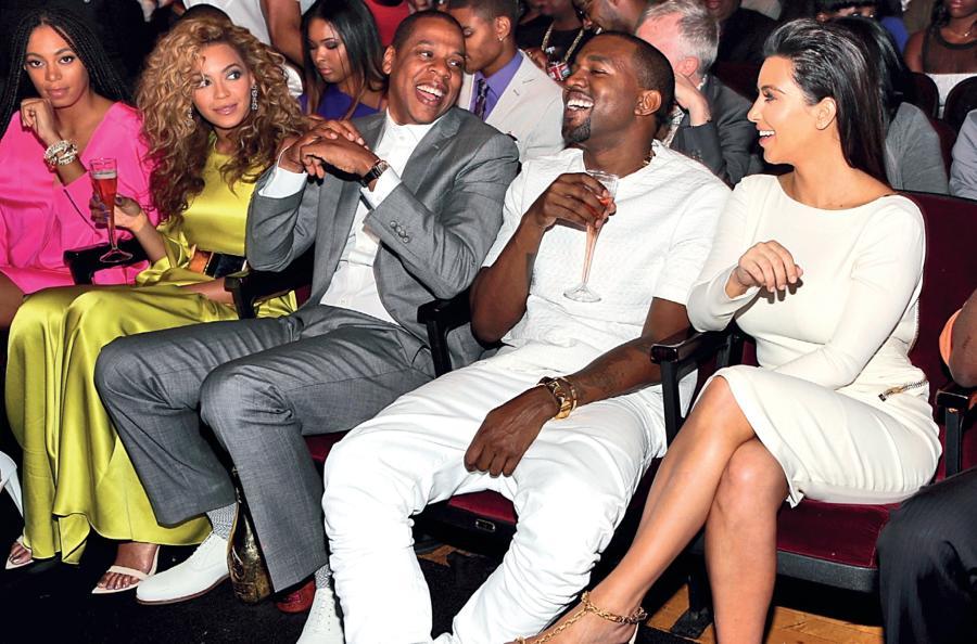 Иногда быть знаменитостью прекрасно. Ким смеется, сидя в первом ряду на вручении премий BET в Лос-Анджелесе вместе с Канье, Джей-Зи и его женой Бейонсе (хотя, похоже, шутка ей не очень понятна).
