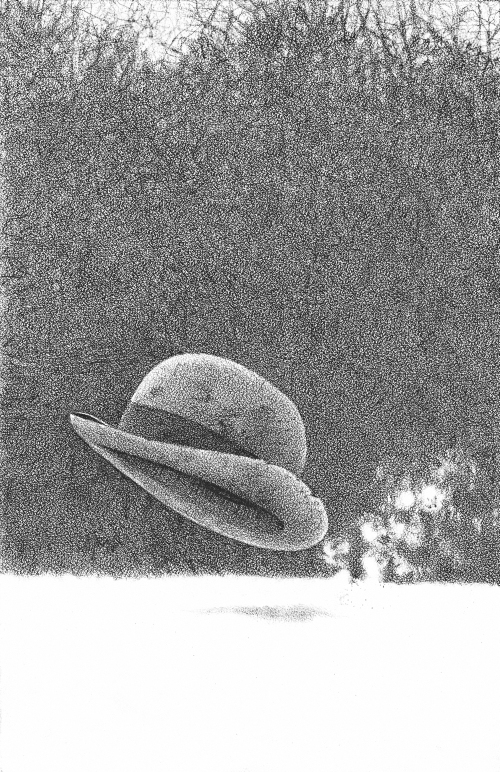 Она наклоняется, чтобы рассмотреть шляпу получше, но та уносится прочь, подхваченная новым порывом ветра, который сдувает ее к дороге. Поднявшись высоко в воздух, черная шляпа ныряет к земле, катится на боку, словно фрисби, а потом снова взмывает ввысь.