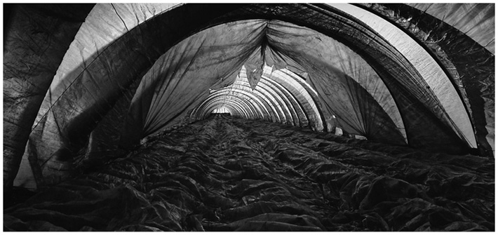 Впечатляющие перспективы можно изучать на овощных и фруктовых полях. В теплицах недалеко от моего дома есть вполне достойные объекты для съемки в любое время года. Весной огромные листы пластиковой пленки защищают саженцы от заморозков. Летом там буйство зелени. Осенью появляются борозды от плуга настолько ровные, словно их провели по линейке. А зима превращает поля в бескрайнее море белого цвета. Такие места идеальны для работы с центральной перспективой и многими другими приемами создания удачной композиции, например с паттернами по всему пространству снимка, последовательностью идентичных объектов, диагональными линиями, которые создают визуальное напряжение, изящными решетками, раскидистыми ветвями, приглушенным светом, интересным кадрированием объектов, размашистыми дугами и многим другим.