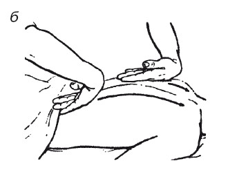 Рис. 31. Поглаживание: а – граблеобразное; б – глажение