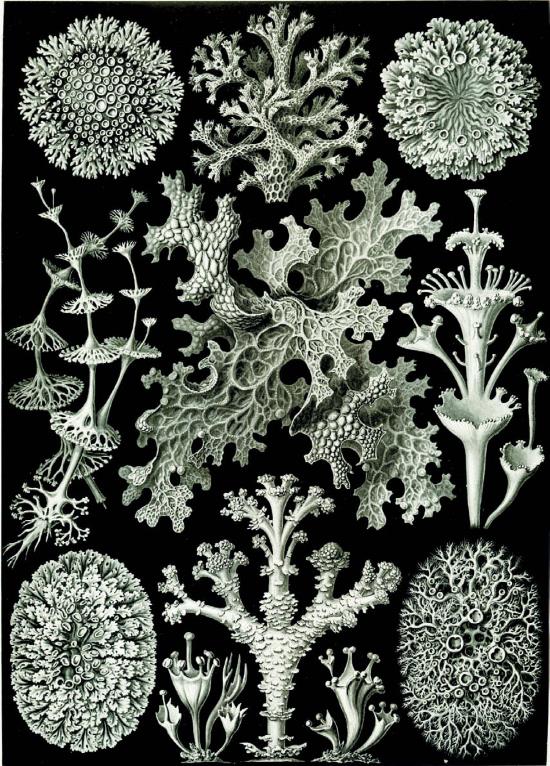 Лишайники. Иллюстрация из книги Эрнста Геккеля «Красота форм в природе» (1904)