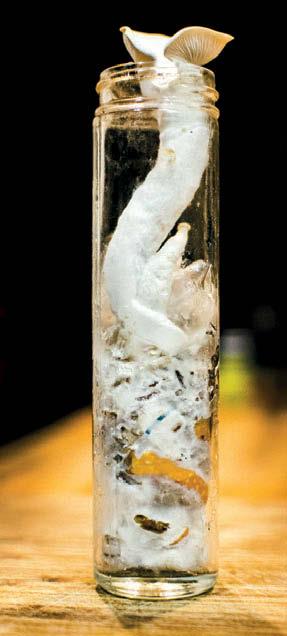 Эксперимент Питера Маккоя с вешенкой. В меню гриба нет ничего, кроме сигаретных окурков. Оболочка сигаретного фильтра «размазана» по внутренней стенке банки.