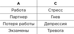 Теперь ваша очередь. Я хочу, чтобы вы записали проблему – активирующее событие – в колонку A и, используя в качестве справочника приведенные выше описания эмоций, нашли следствие и записали его в колонку C.