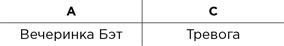 Если бы Тео не смог дать краткого или однозначного ответа, мы могли бы составить список всего, что, по его мнению, вызывало беспокойство в связи с посещением вечеринки Бэт. Список мог бы выглядеть так: