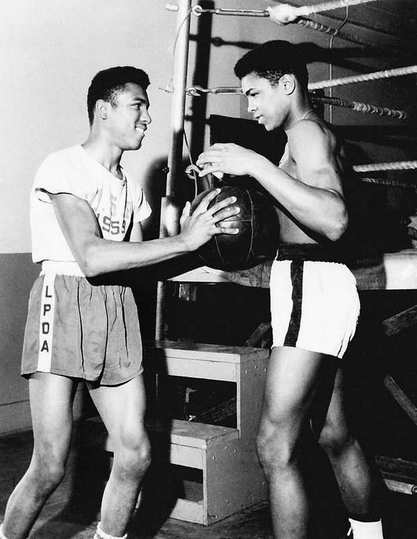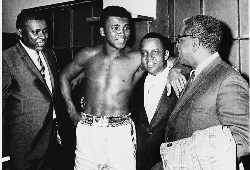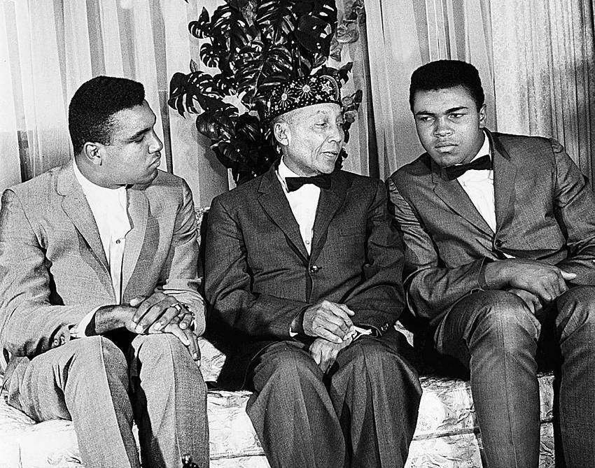 Завоевав титул, Али объявил о своей приверженности «Нации ислама» и Элайдже Мухаммаду. Элайджа наградил боксера новым именем, Мухаммед Али. Руди Клей (слева) также присоединился к «Нации» и стал Рахманом Али. © Lowell K. Riley