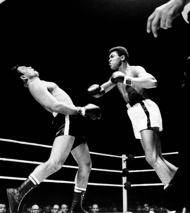 После неважного старта Клей одолел Алекса Митеффа правым ударом и вышел победителем в своем девятом профессиональном бое в 1961 году. © Art Shay