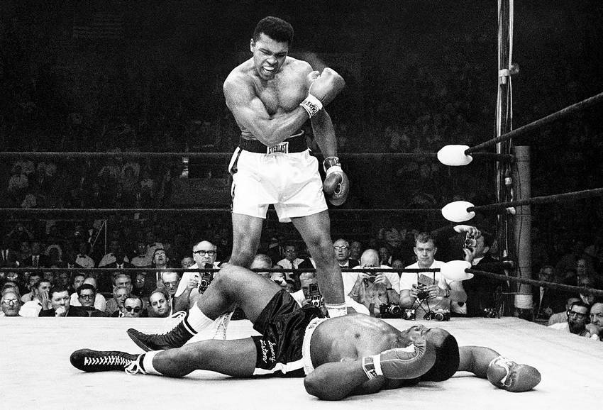 Фаворит встречи Сонни Листон не был готов к скорости, силе и беспощадным джебам претендента на титул Кассиуса Клея. Associated Press
