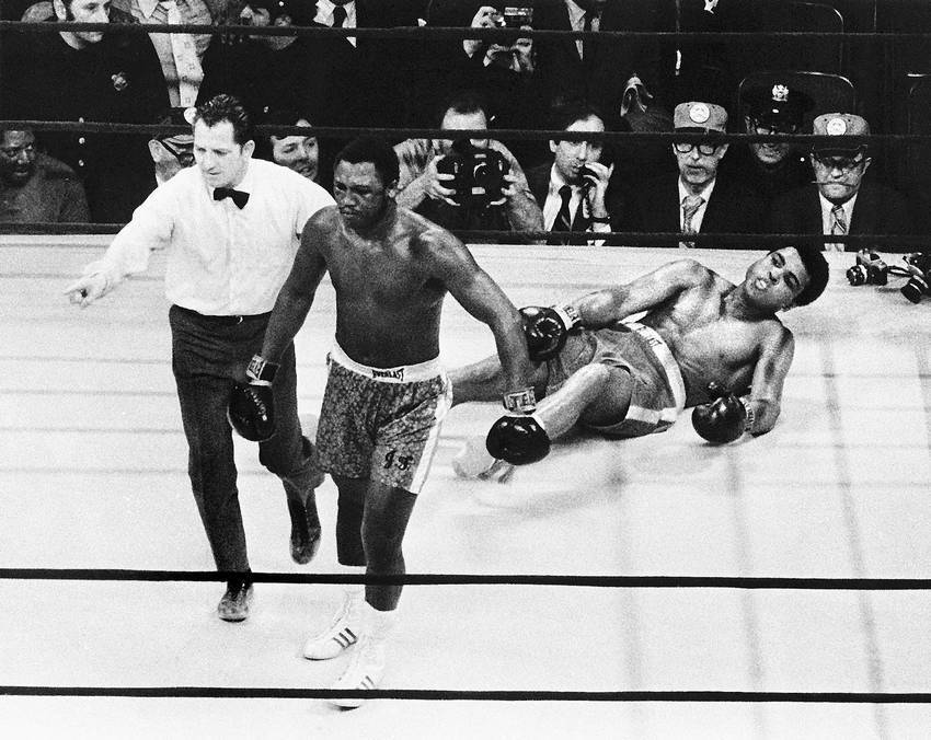 Битва века: Али встает на ноги, но проигрывает Джо Фрейзеру в пятнадцатом раунде в одном из самых великих и жестоких боев за всю историю бокса. Associated Press