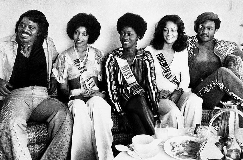 В Заире Али повстречал и влюбился в Веронику Порш, одну из девушек, которых наняли рекламировать бой (вторая справа, рядом с Форманом). Associated Press, Horst Faas