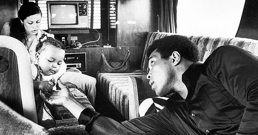 После развода с Белиндой Али женился на Веронике Порш. На этом снимке они вместе с их дочерью Ханой едут в автобусе на встречу с президентом Джимми Картером в Вашингтон. © Michael Gaffney Photo