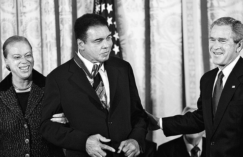 В 2005 году президент Джордж Буш-младший наградил Али Президентской медалью Свободы, назвав его «неистовым бойцом и человеком мира». Associated Press, Evan Vucci