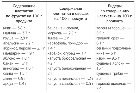 Аналогичные ужасы сулит отсутствие в рационе достаточного количества клетчатки. Это плохо для всех органов, и для кишечника в первую очередь. Клетчатки нужно кушать 25–30 г в сутки. Это составная часть любой растительной пищи. В овощах и фруктах она содержится в количестве 2–4 г на 100 г. Много клетчатки есть в злаках, бобовых, орехах, семечках. В целом она есть везде в растительной пище, но проблема в том, что мы чаще едим продукты из зерен без оболочек, так что в хлебе, макаронах и очищенном рисе нерастворимых пищевых волокон очень мало или почти нет. В продуктах животного происхождения клетчатки нет вообще.