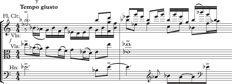 b) Образец неоклассицизма: первые такты Концерта для камерного оркестра «Дамбартон-Окс» (1937) Стравинского