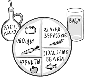 Для начала обзаведитесь тарелкой диаметром 20–24 см. Теперь условно поделите ее пополам, а потом одну из половин еще раз пополам. У вас получится три части: одна часть – половина тарелки, и две – по четверти. Каждой части будет соответствовать определенный вид продуктов: