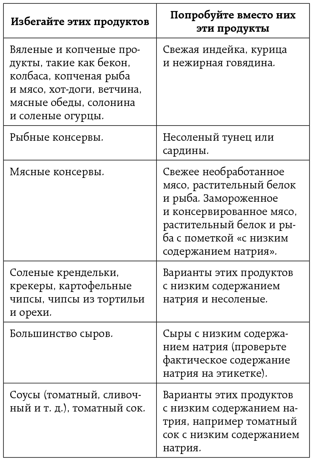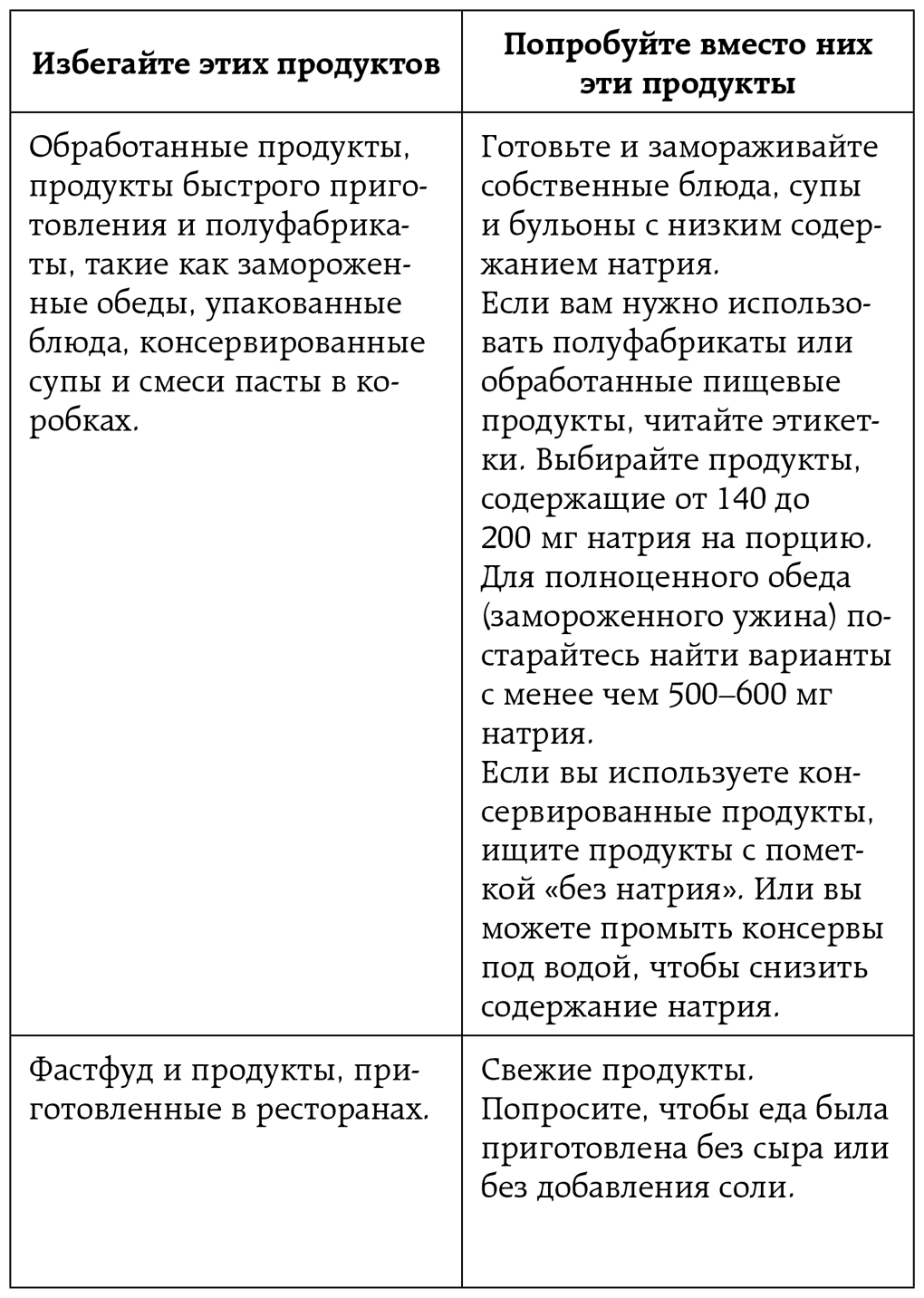 • По возможности избегайте ультраобработанных продуктов (подробнее см. Часть 2. Ожирение. Чем опасна ультраобработанная пища?). Это самое важное, что вы можете сделать, чтобы потреблять меньше натрия.
