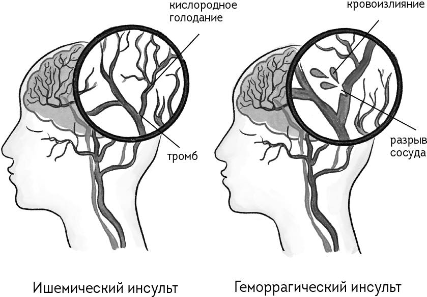 Различают два основных типа инсульта: ишемический и геморрагический.