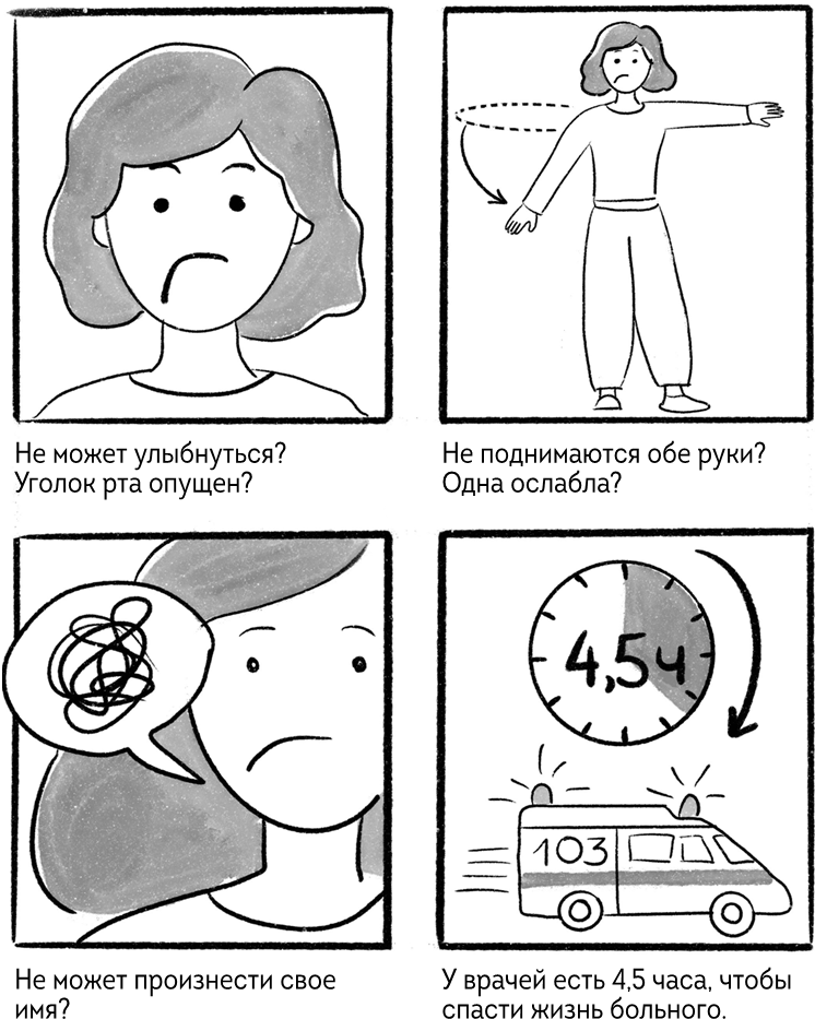 Признаки и симптомы инсульта могут быть похожи на другие состояния. Единственный способ узнать наверняка – как можно скорее обратиться за помощью к специалисту.