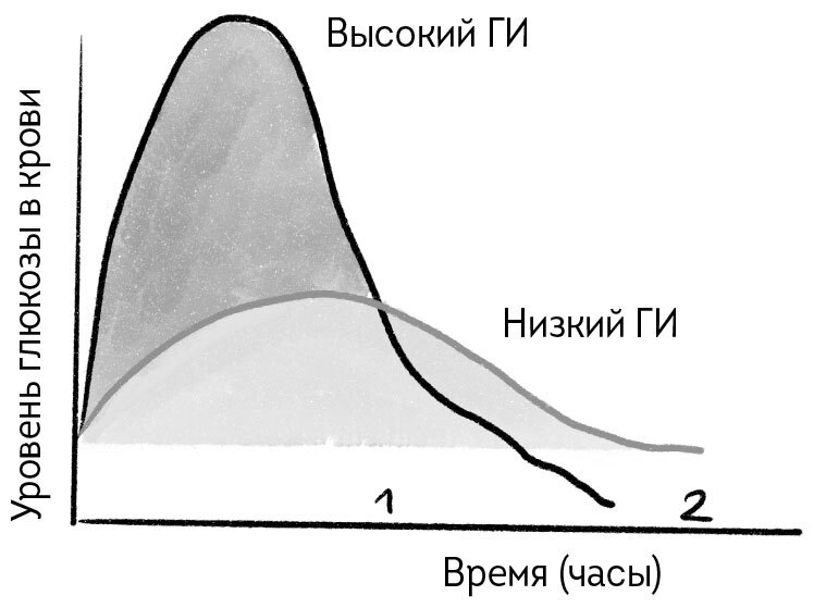 Чем выше гликемический индекс, тем быстрее и выше вырастут значения глюкозы в крови.
