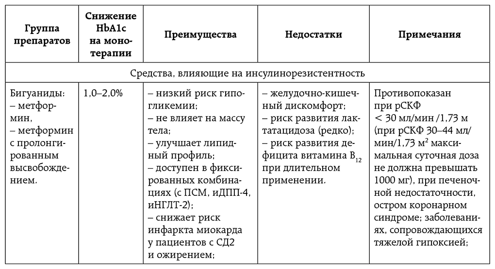 СРАВНИТЕЛЬНАЯ ЭФФЕКТИВНОСТЬ, ПРЕИМУЩЕСТВА И НЕДОСТАТКИ САХАРОСНИЖАЮЩИХ ПРЕПАРАТОВ