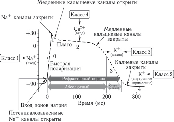 Каждая подгруппа различается по степени блокады натриевых каналов. Помимо воздействия на фазу 0 потенциала действия, блокаторы натриевых каналов также могут изменять продолжительность потенциала действия и эффективный рефрактерный период (ERP) – период времени, когда новый потенциал действия не может быть инициирован.
