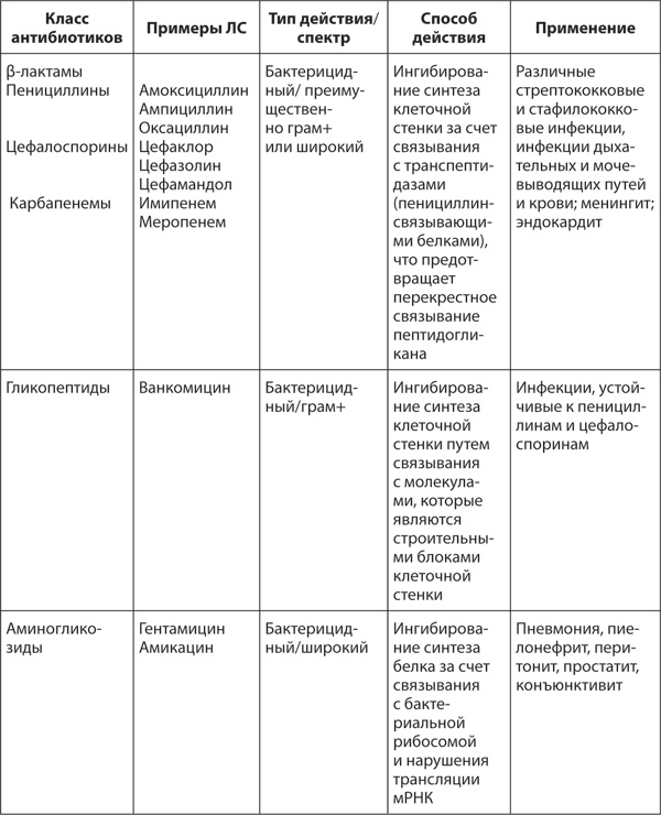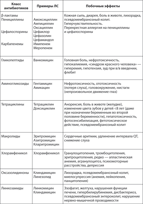 Таблица 24. Побочные эффекты, характерные для отдельных классов антибиотиков