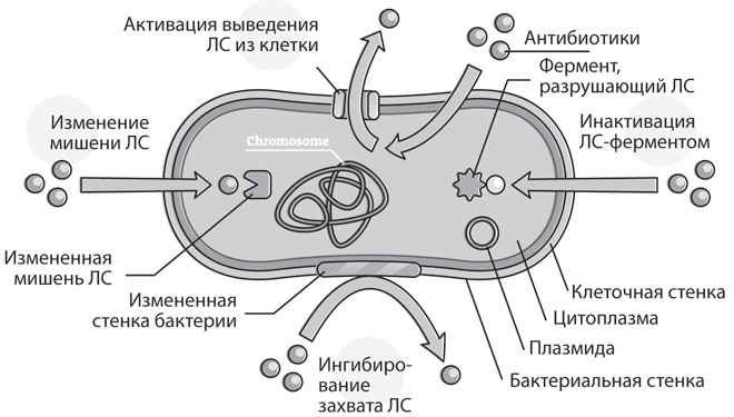 Рис. 24. Механизмы развития устойчивости к антибиотикам