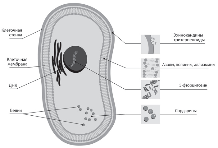 Рис. 26. Механизмы действия противогрибковых средств