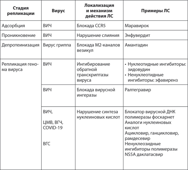 Таблица 27. Основные механизмы действия противовирусных средств