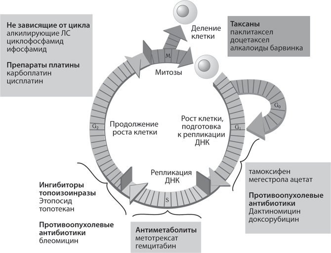 Рис. 27. Механизмы действия противоопухолевых средств.