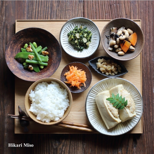 Итак, в основу бэнто, как и всей японской кухни, входит рис, рыба и большое количество овощей. Мясо – более редкий продукт, употребляется японцами умеренно и чаще всего вместе с овощами, на что весомо повлиял переход буддизма из Китая в Японию, а также большую доступность именно рыбы и морепродуктов в большей части страны. И если посмотреть на традиционный японский прием пищи, то вы увидите примерно одинаковую картину что в домашних условиях: