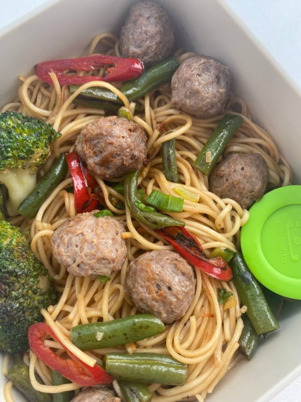 • вместо предложенного соуса можно использовать соус терияки или устричный соус, слегка обжарив в них фрикадельки и добавив к ним овощи и пасту;