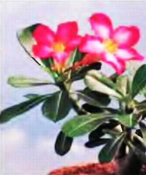 Африканский кустарник с толстым стволом и короткими мясистыми ветвями. Блестящие зеленые листья и крупные розовые цветки схожи с олеандром. Млечный сок растения хотя и описывается как ядовитый, но отравления неизвестны. Из адениума аборигены получают яд для стрел, поэтому следует при уходе за растением обращать внимание на ранки на руках. Родственник адениума тучного — пахиподиум Ламера (Pachypodium lamerei), похожий на колонновидный кактус, но отличающийся от него, кроме прочего, пучкообразным расположением листьев на утолщенном стволе.