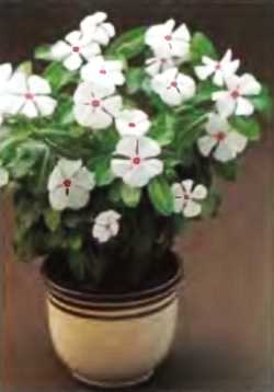 Полукустарник, растущий в тропиках, у нас выращивается в горшках. Белые, розово-красные или красные цветки развернуты в форме диска. Как и большинство растений семейства кутровых, катарантус причисляется к ядовитым растениям. См. Олеандр.