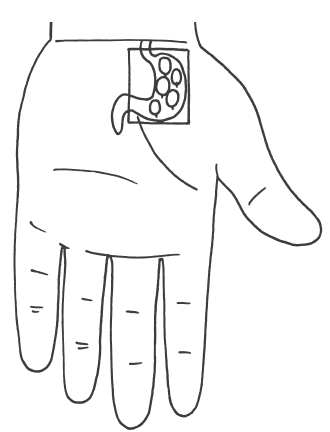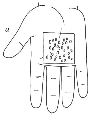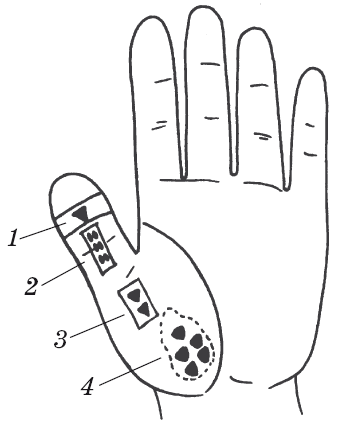 Рис. 47. Расположение семян на ладони при лечении заболеваний желудка
