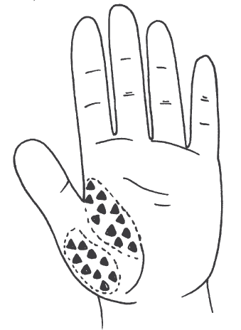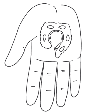 Рис. 49. Расположение семян на ладони при лечении запоров