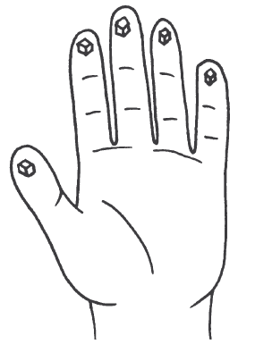 Можно воздействовать цветом на бель-меридианы пальцев кисти. Их закрашивают черным цветом и таким образом усиливают энергию холода (рис. 46).